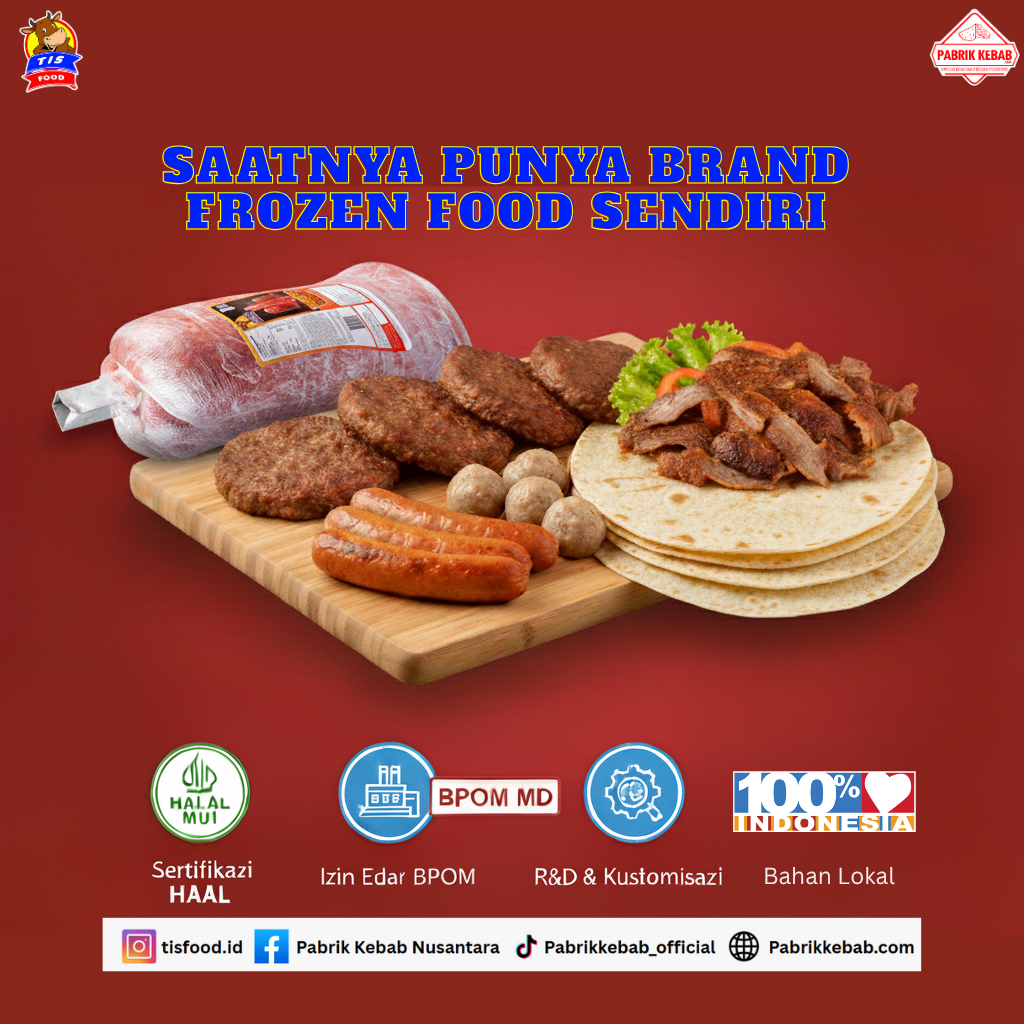 Kini, Anda tidak perlu lagi pusing memikirkan proses produksi yang rumit. Bersama TIS Food dan Pabrik Kebab Nusantara, impian untuk memiliki brand frozen food sendiri bisa segera terwujud!